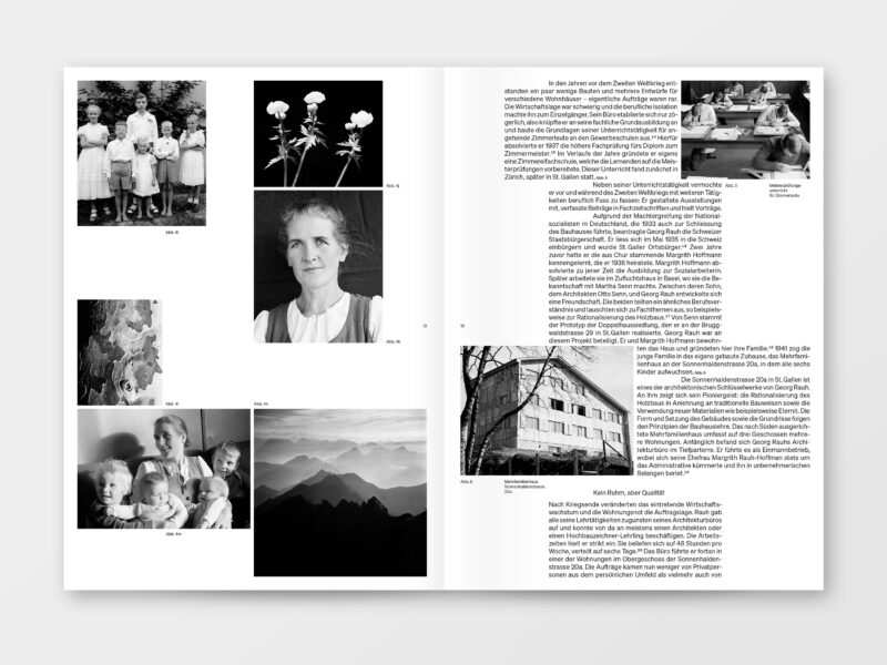 Georg Rauh (1906–1965) hat mit seinem Schaffen die Ostschweiz bereichert. Sein Werk zeugt von Bescheidenheit, Präzision und der Sorge fürs Handwerk. Als Person suchte er weder Ruhm noch Rampenlicht, doch in seiner Architektur manifestierte sich ein klares Programm: Reduktion und Funktionalität. Der gelernte Zimmermann hatte am Bauhaus Dessau unter Hannes Meyer und Ludwig Hilberseimer studiert und 1932 unter Mies van der Rohe diplomiert. Seine rund 100 Bauwerke zeichnen sich durch überlegte Setzungen der Volumina, kluge Grundrisse und eine subtile Materialwahl aus.