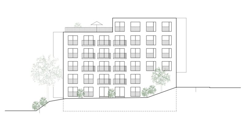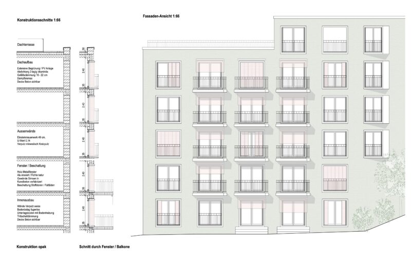 Eine Fassadenbegrünung zur Pelikanstrasse hin ist ein Beitrag zum Stadtgrün, bringt eine attraktive Wohnqualitätssteigerung mit sich, auch hinsichtlich Klima, Hitzeschutz und als besondere Aufwertung von Luft- und Lebensqualität.